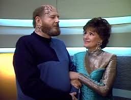 “The Host” has the Enterprise en route to deliver Ambassador Odan who will be assisting with peace negotiations, after he’s had afternoon and evening delights with Dr. Beverly Crusher. Odan refuses to use the transporter, oh great another McCoy and Pulaski… can you hear me rolling my eyes? Riker pilots Odan but they are attacked and Odan is hurt… except it’s just his host, he’s really a parasite that needs a new host, yeesh.